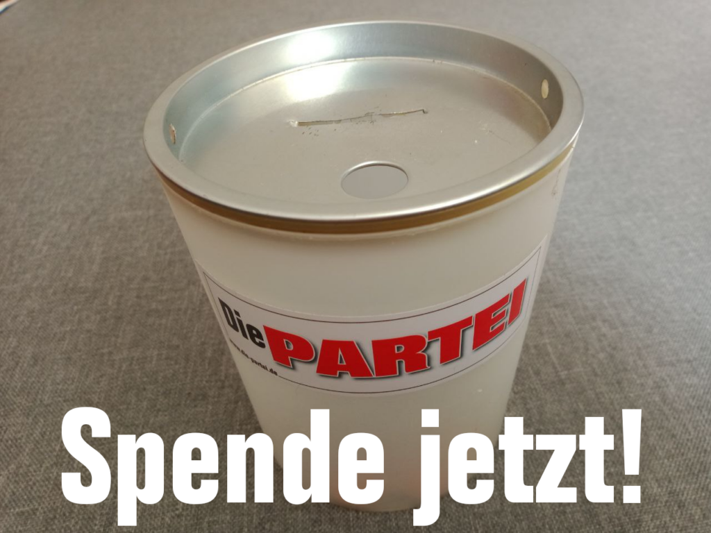Spenden an Die PARTEI sind steuerlich abzugsfähig und werden im Rahmen der irrsinnigen Parteienfinanzierung vom Staat auch noch quasi verdoppelt!