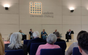 Lustig wird es im anschließenden Podiumsgespräch mit der greisen Kreistagsvorsitzenden Wucherpfennig, Bouffi, dem Darmstädter Regierungspräsidenten und dem Vize-Landrat zum Thema „Demokratie in der Krise?“. Nach einigen einführenden Worten kommt die Sprache auf junge Leute und deren Interesse an Politik. Wucherpfennig erzählt von ihren Nichten und Neffen, die sie mal zu Politik und ihr Engagement befragt hätte. Die junge Klimaliste-Kollegin neben mir und ich schauen uns an und schmunzeln: „Na klar. Die werden ihrer Tante sicher von ihren Ansichten erzählen…“