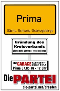 Bei unseren Genossen in Pirna ist selbige würdigst präpariert für die Gründung des Kreisverbands Sächsische Schweiz-Osterzgebirge am 7. Mai (Die GARAGE, Albrecht-Dürer-Str. 4).