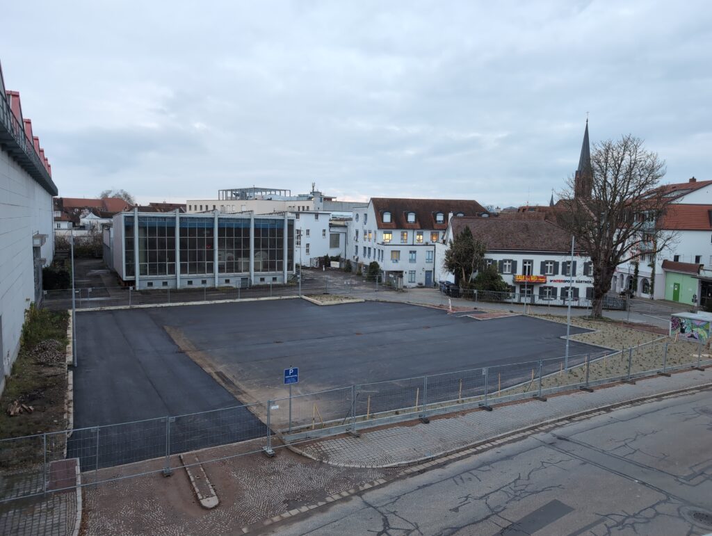 Endlich ist es soweit. Nach nur sieben Wochen Bauzeit entsteht eine wunderhübsche zukunftsweisende tiefschwarze Parkfläche umsäumt von lieblichen Schottergärten.