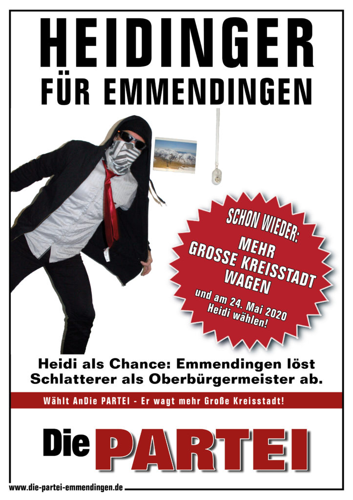 nach eingehender Prüfung der uns unaufgefordert zugesandten Briefwahlunterlagen für die OB-Wahl der Großen Kreisstadt Emmendingen für den 24.05. ist uns aufgefallen: Es fehlt einfach eine gute Kandidatur, deswegen unser Wahlvorschlag für Sie: