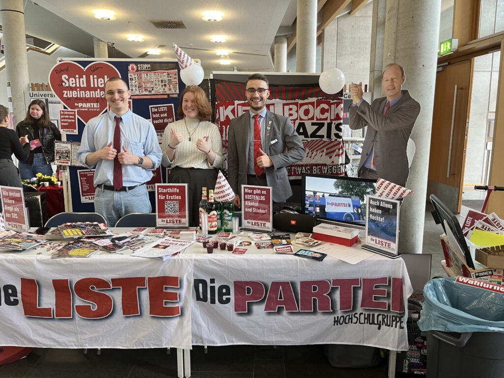 Wir sind Die HOCHSCHULGRUPPE der Partei Die PARTEI und auferstanden aus Ruinen, um die Europa-Universität Viadrina für alle Studierende von Arbeit, „richtiger Hochschulpolitik“ und anderem unseriösen Kram des sogenannten „echten“ Lebens zu befreien.