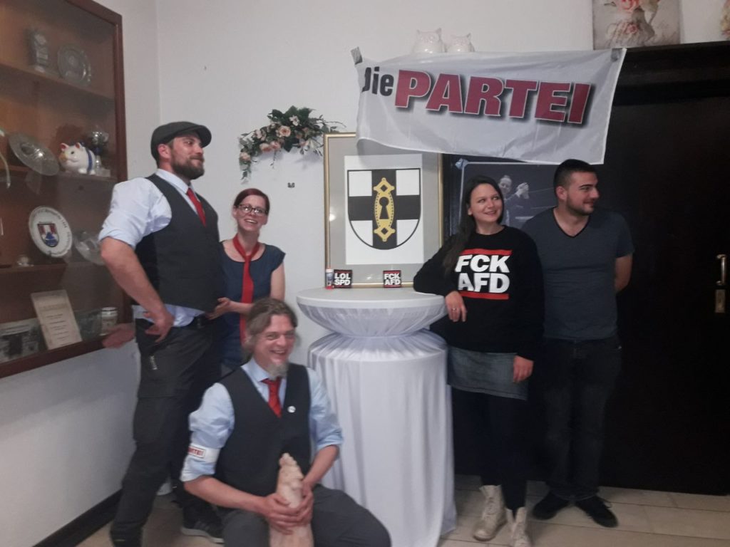 stellt sich vor. Die PARTEI übernimmt Aufgaben. Ort: Spunk, Festweg 21 in Ückendorf (Facebook)