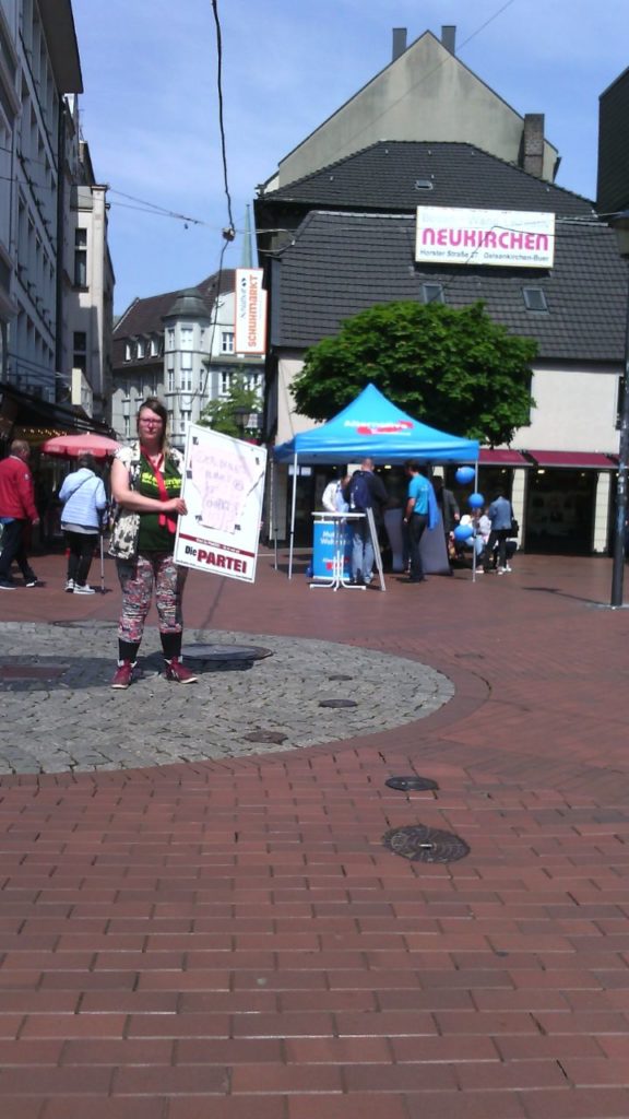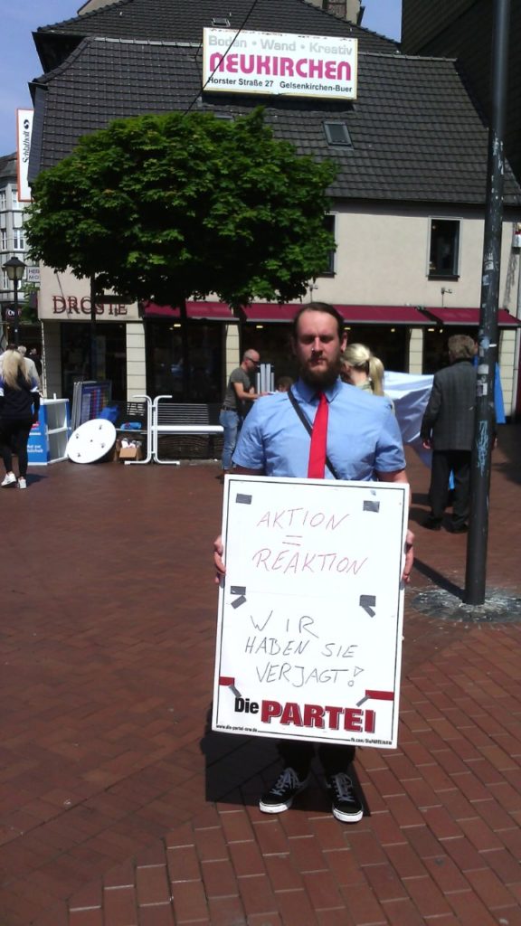 Erst im März gegründet, haben wir bereits mehr politische Aktionen in und um Gelsenkirchen initiiert, als alle etablierten Alt- und Spaßparteien zusammen, denn wir knien uns echt rein, um unsere verbesserungswürdige, kaputte Stadt am westlichem Rande unserer verbesserungswürdigen Republik zu optimieren, verschönern und damit letztlich zu verbessern. HURRA!
