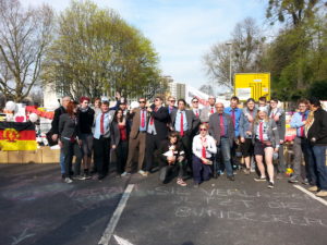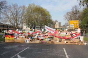 „Die Idee mit der Mauer kennen Sie vielleicht noch aus der DDR. Da wurde auch eine Mauer gebaut, um Westberlin vor Ostberlin zu schützen. Mit unserer Mauer der Liebe wollten wir die oft von Hasszuständen geplagten Braunbären zurückhalten und vor sich selbst schützen. Dass die Mauer ausgerechnet in der Berliner Straße errichtet wurde, ist selbstverständlich ein Zufall. Vielen Dank an dieser Stelle an die Polizei.“, bezieht hierzu Heide Haas, das blonde Wunder und nebenbei Leiterin Agitprop des Kreisverbands, die sich rechtzeitig den 3. Platz der Landesliste für