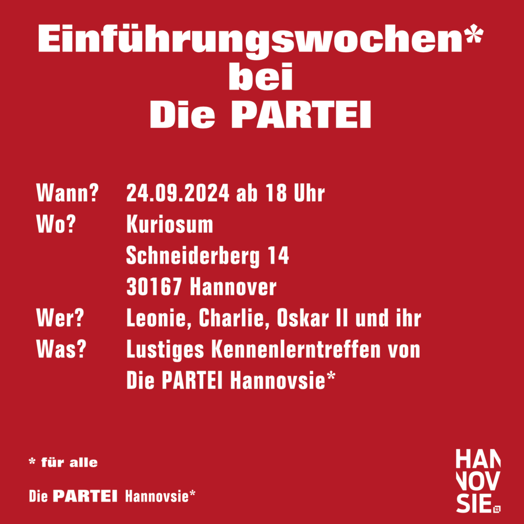 Die PARTEI Hannovsie* wants you! Du hast Interesse an Politik? Du willst bei uns mitmischen oder uns einfach mal auf den Zahn fühlen?