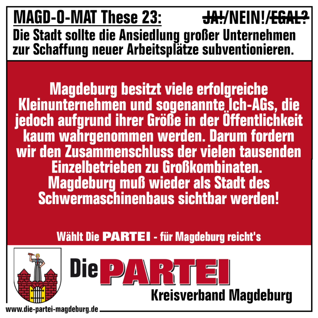 Keine Arbeitsplätze in Magdeburg? Wir haben da was anderes gehört… Heute gibts unsere Antwort zu Frage 23 im MAGD-O-Mat.