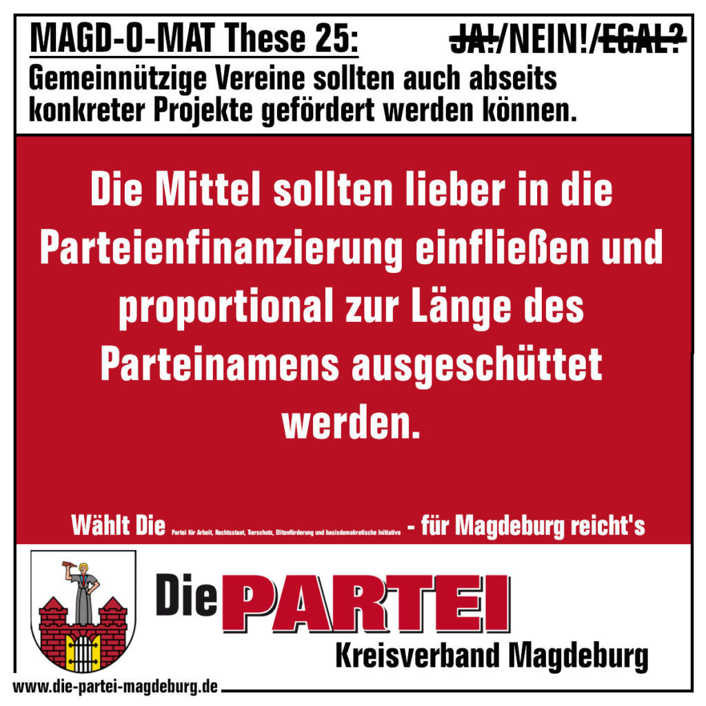 Noch 21 Tage bis zur Wahl. Heut gehts um die Finanzierung von Vereinen in unserer MAGD-O-MAT-Antwort: