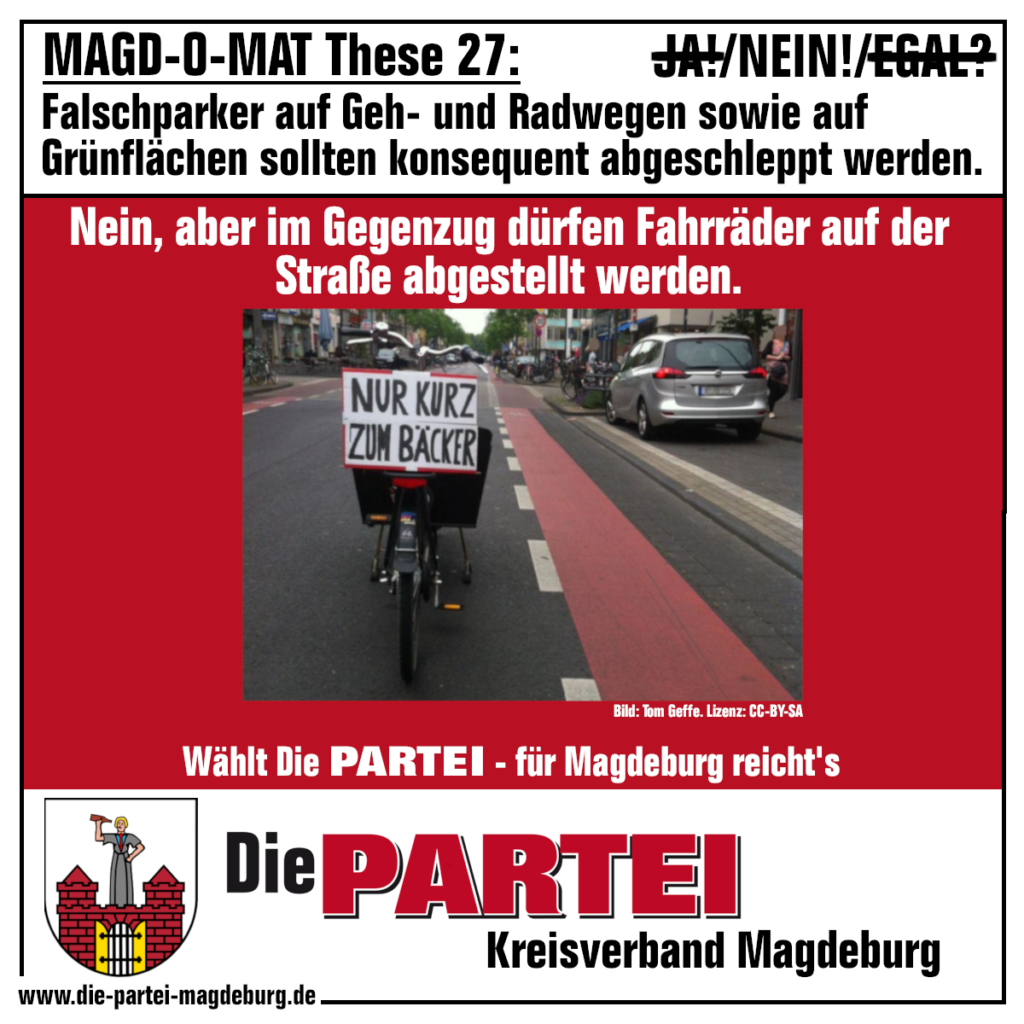 Noch 22 Tage bis zur Wahl. Heute gibts unseren Vorschlag zum Umgang mit Falschparkern im MAGD-O-MAT: