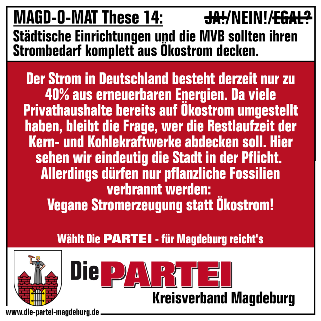 Heute ist 26. Jahrestag von Tschernobyl, darum Forderung 14 im MAGD-O-Mat: Veganer Strom für die MVB.