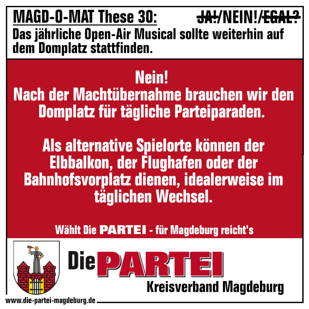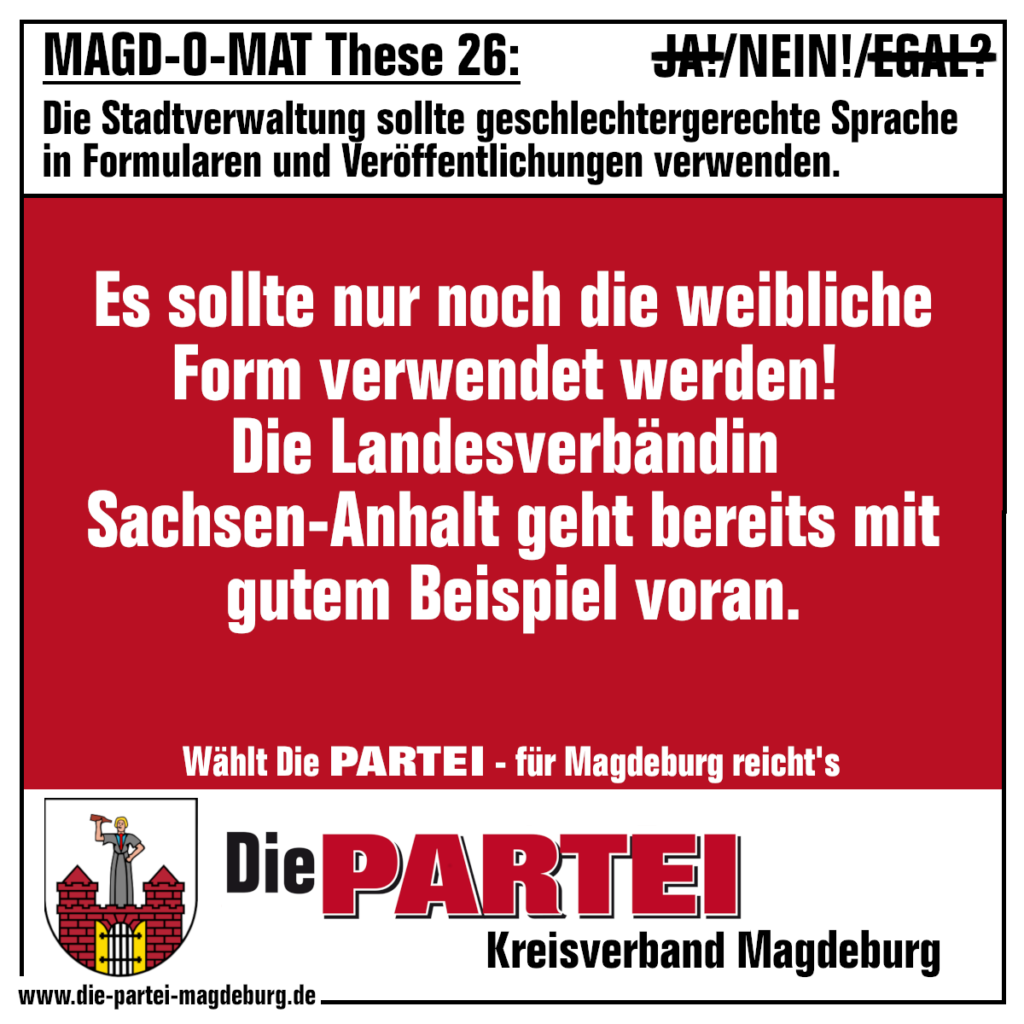 Hurra, der MAGD-O-MAT ist online! Da diese Platform aber unsere Antworten nicht veröffentlichen möchte, tun wir das nun täglich hier.