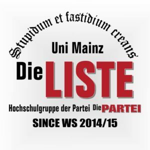 PARTEI und politische Hochschulgruppen sind voneinander getrennte Institutionen. Trotzdem begrüßen wir die „Arbeit“ der sehr guten PARTEI HSG „Die LISTE“, an der Uni-Mainz.