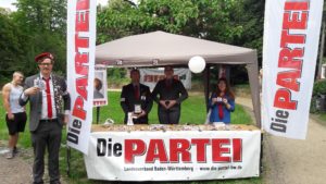 Die PARTEI Mannheim hat tatkräftige Unterstützung geschickt als es in Heidelberg galt, die AfD zu ärgern. Diese Pseudopartei aluhuttragender alter Männer hat sich die dortige Stadthalle zueigen gemacht, um dort ihren in Kürze scheiternden und darum namentlich nicht erwähnenswerten Direktkandidaten zu feiern. Glücklicherweise war die Polizei so freundlich, unsere wunderschöne Mahnwache direkt gegenüber der Eingangstür zu bewachen vor diesen obszönen Pöbeltouristen und sonstigem Gesocks. Es war sehr schön!