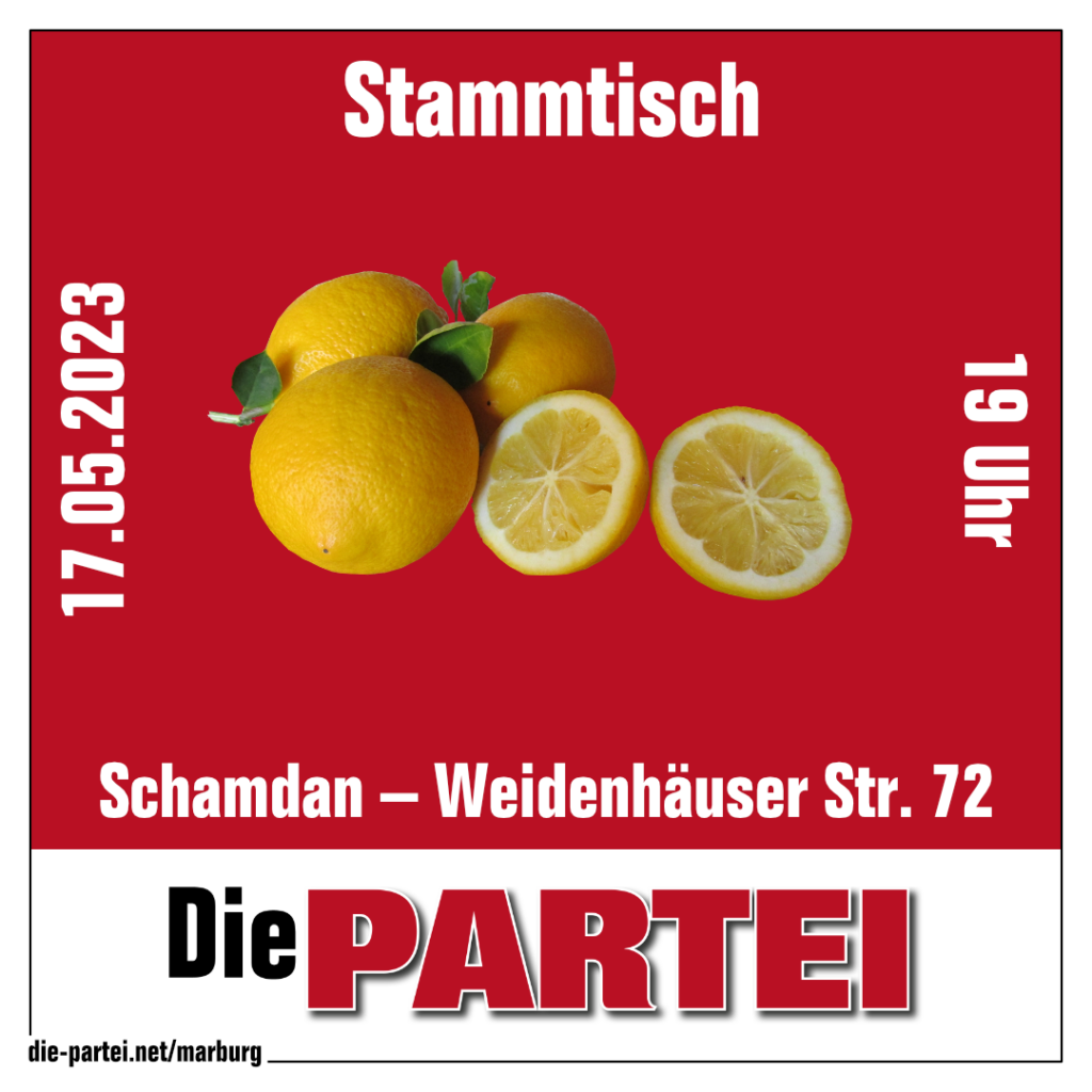 Beim Landesparteitag des Landesverbandes Hessen der Partei Die PARTEI wurde am 05.03.2023 im Philipp-Scheidemann-Haus in Kassel ein neuer Landesvorstand gewählt. Mit klarer Mehrheit wurde ein Vorstandsblock rund um die Darmstädterin Mandy Pingel als erster Vorsitzenden gewählt, dem aus Marburg auch Franziska Schlegel als Schatzmeisterin und Dr. Ulrich Wolf als Regionalkoordinatorin angehören. Mit dem neuen Vorstand gewinnt Die PARTEI für den Landtagswahlkampf in Hessen eine solide Basis zur Unterstützung des Spitzenkandidaten Dominic Harapat (Wetzlar). Dabei werden entscheidende Impulse auch von Marburg ausgehen. Die ausgewiesene Finanzexpertin und Excelspezialistin Franziska Schlegel wird die Einwerbung und Verwaltung von Spenden- und Fördergeldern auf ein neues Niveau bringen. Dr. Ulrich Wolf gilt als ausgewiesener Experte für das Lokalkolorit fast aller Landesteile und wird den Wahlkampf auf Verbandsebene revolutionieren. Als Vorsitzender des Kreisverbandes Marburg-Biedenkopf weiß er die Basis in einem der ältesten Kreisverbände der Partei hinter sich. Der gesamte Vorstand, bestehend aus Mandy Pingel (Vorsitzende, Darmstadt), Darwin Walter (stellv. Vorsitzender, Gießen), Franziska Schlegel (Schatzmeisterin, Marburg), Steven Tereschenko-Schuster (stellv. Schatzmeister, Offenbach), Mario Pingel (Generalsekretär, Darmstadt), Christopher-Ray Lenz (stellv. Generalsekretär, Wetzlar), Alexander Diller (polit. Geschäftsführer, Altenstadt), Josephine Scheef (stellv. polit. Geschäftsführerin, Mühlheim) und Dr. Ulrich Wolf (Regionalkoordinator, Marburg), wird die Verantwortung für den Einzug von Dominic Harapat in die hessische Staatskanzlei auf dessen zielstrebigen Wahlkampf abwälzen.