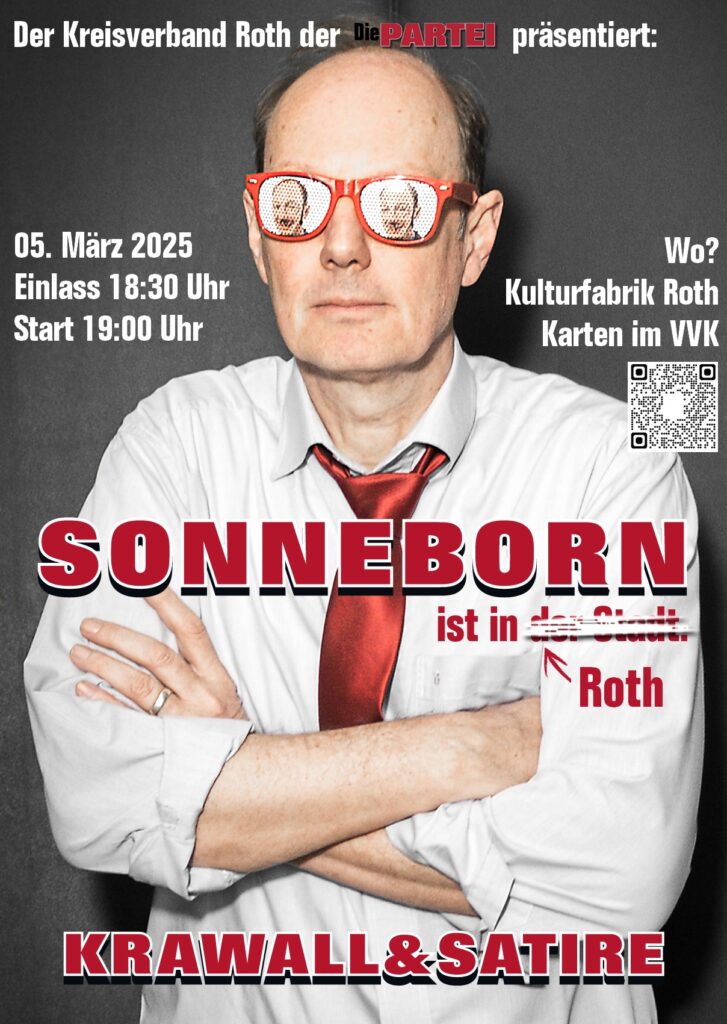 Ein Abend mit Martin Sonneborn ist ein ganz unaufgeregtes Multimediaspektakel mit lustigen Filmen und brutaler politischer Agitation zugunsten der PARTEI, die in Deutschland immer noch unbemerkt nach der Macht greift.
