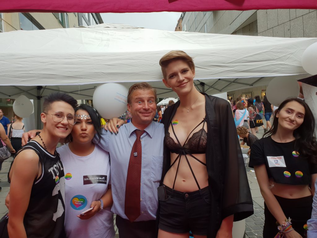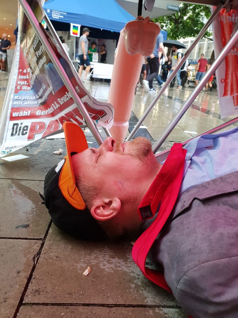 Erst Parade, dann Infotisch, dann Sturzbäche Regen.