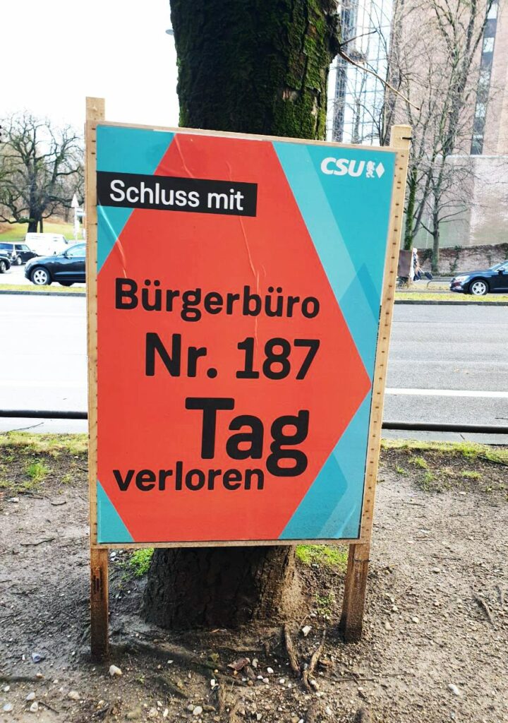 Oder habt ihr von eurer Parteispitze für die inhaltsleere „wieder München werden“ Kampagne so viel Gegenwind bekommen, dass ihr euch kurzerhand Plakate aus anderen Orten geliehen habt, egal ob diese Sinn ergeben, denn die dummen Wähler werden es schon nicht merken?