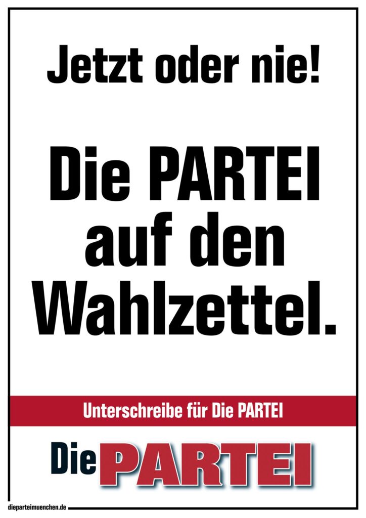 Heute die letzte Chance um Die PARTEI in den Münchner Stadtrat zu schicken! Von 09:30-16:00 Uhr könnt ihr in der ganzen Stadt unterschreiben! Infos unter www.grauesrathaus.de