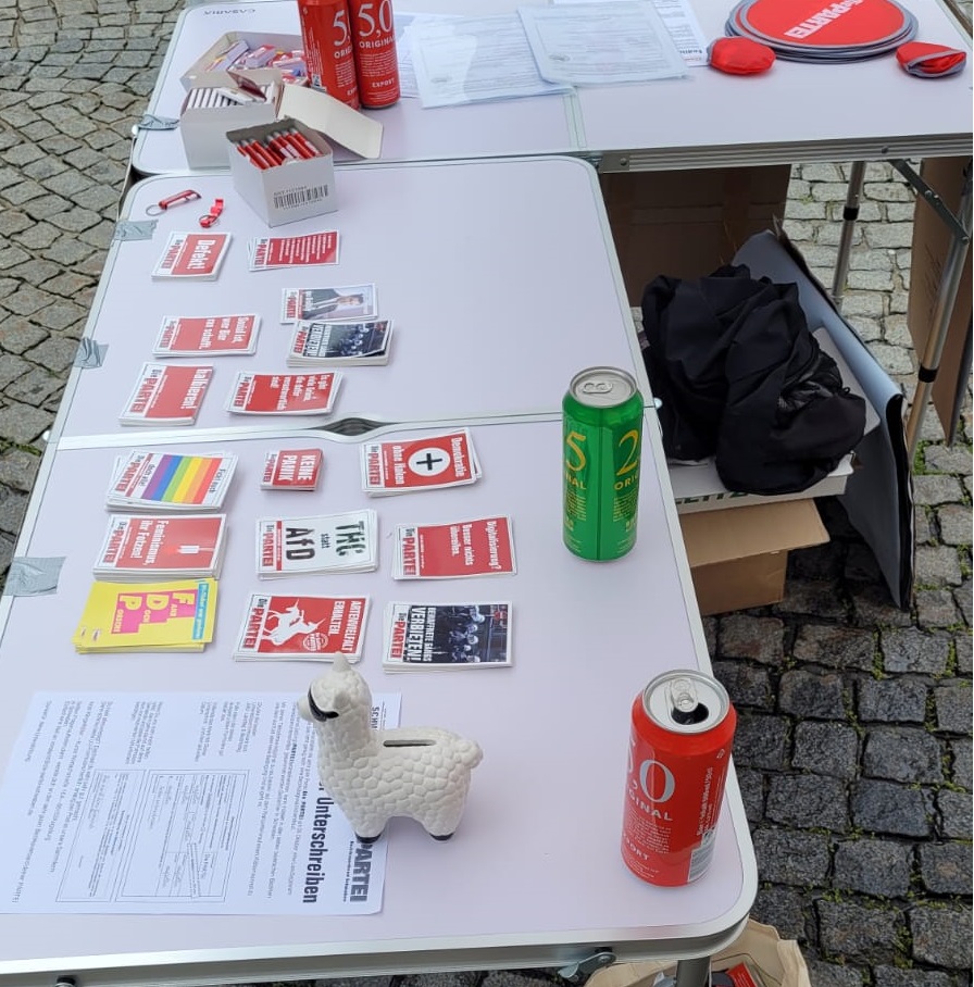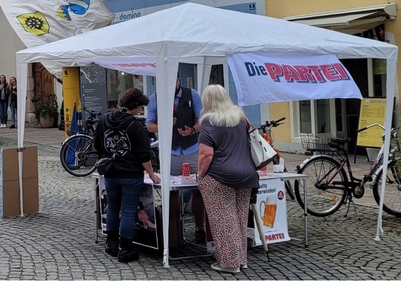 Wir hatten tolle Gespräche mit unseren Wahlvieh und Noch-Nicht-Wahlvieh und es gab überall Eisdielen, was wir sehr gut fanden. Ein „Highlight“ war ein Pärchen, dass bei unserem Sticker „Demokratie ohne Haken“ meinte: „Demokratie ohne Haken? Das ist nichts für uns. Lass uns weiter gehen!“