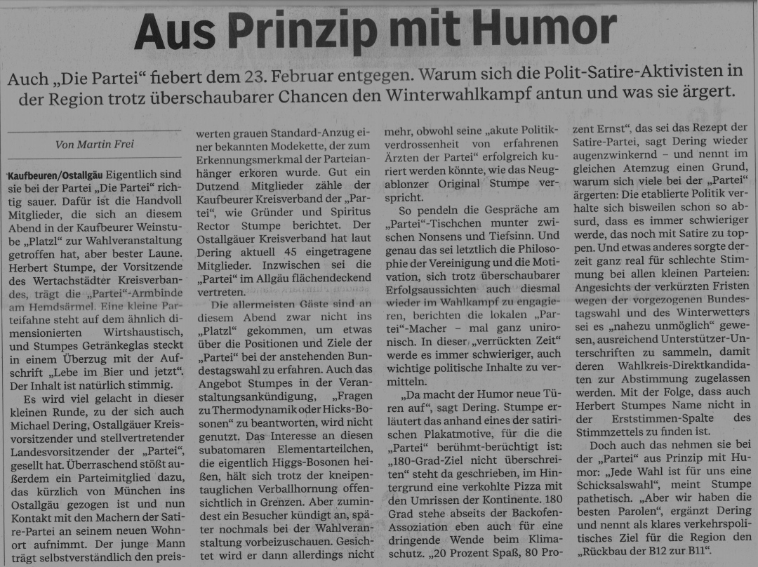Die Veranstaltung wurde auch bereits von der lokalen Presse begleitet. Außerdem wurde auch das regionale Wahlvieh neugierig und löcherte uns mit Fragen, welche nur Die PARTEI zu beantworten in Frage kam!