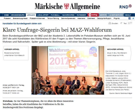 prüfte die MAZ in Kooperation mit der Akademie 2. Lebenshälfte in dieser Diskussionsveranstaltung die Kandidaten.