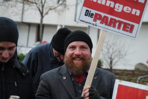 Ab 17 Uhr gibt es sinnfreie Reden, den PARTEI-Film und Plätzchenbier!