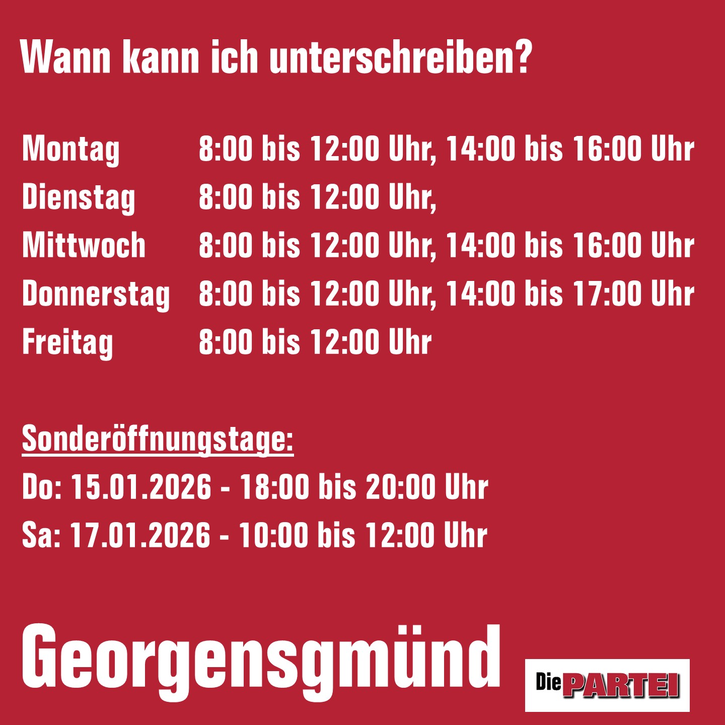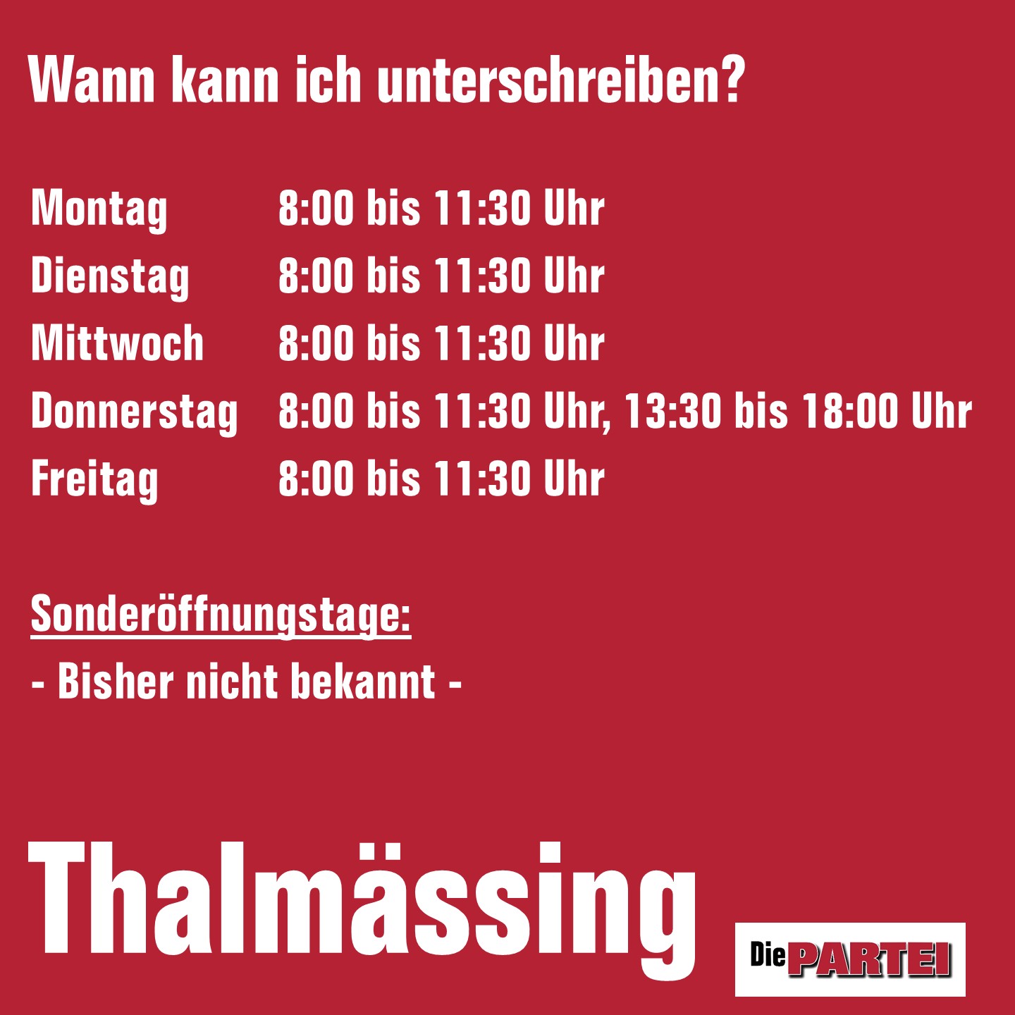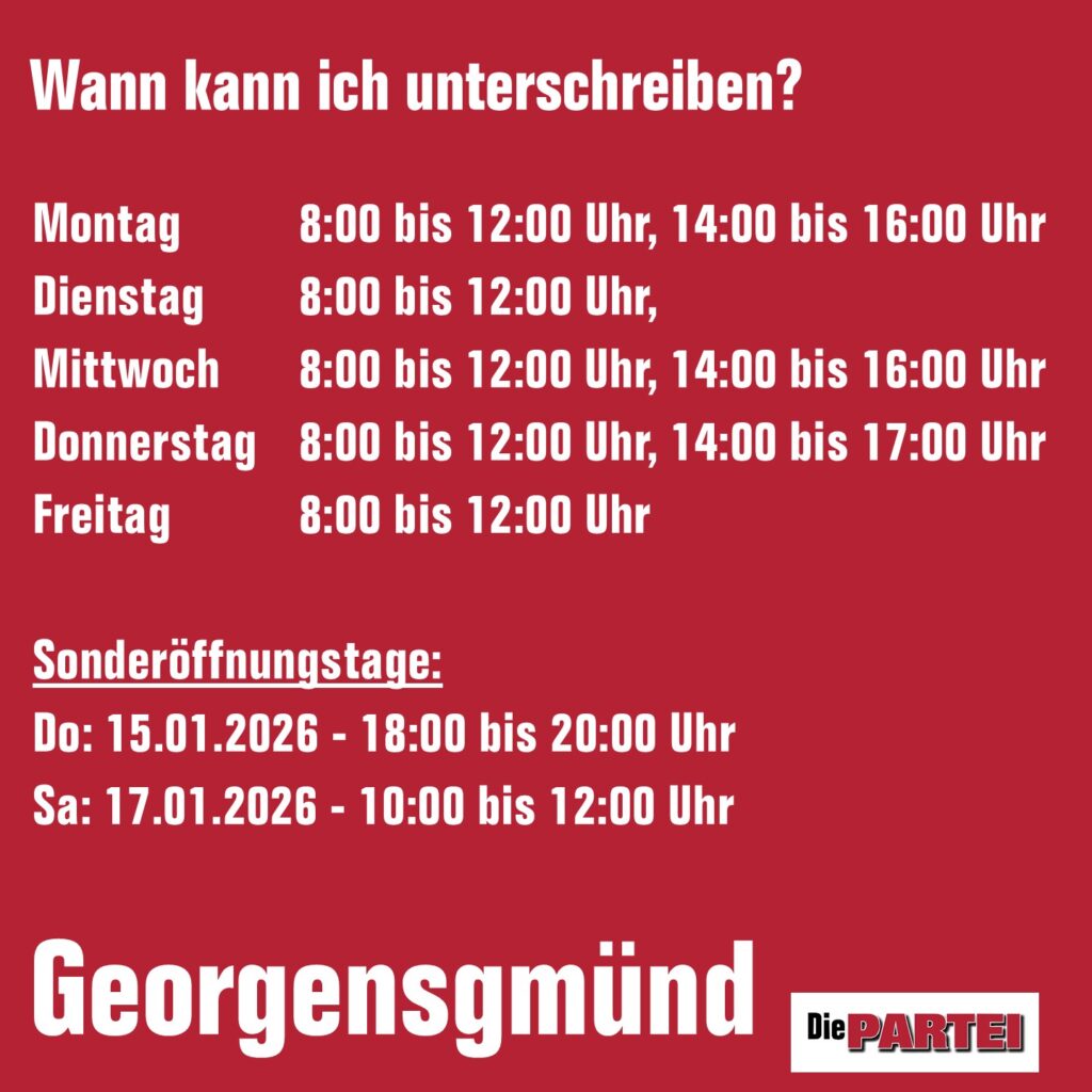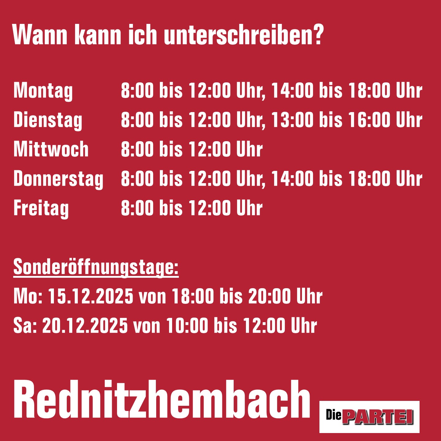 Um zur Kreistagswahl zugelassen zu werden brauchen wir insgesamt 385 Unterstützungsunterschriften. Damit das möglichst einfach ist, gibt das Gesetz eine Unterzeichnung im Rathaus der jeweiligen Heimatgemeinde vor. Wir haben dir alle Öffnungszeiten der Gemeinden zusammengefasst, jetzt musst du nur noch unterschreiben. Danke dir bereits jetzt!