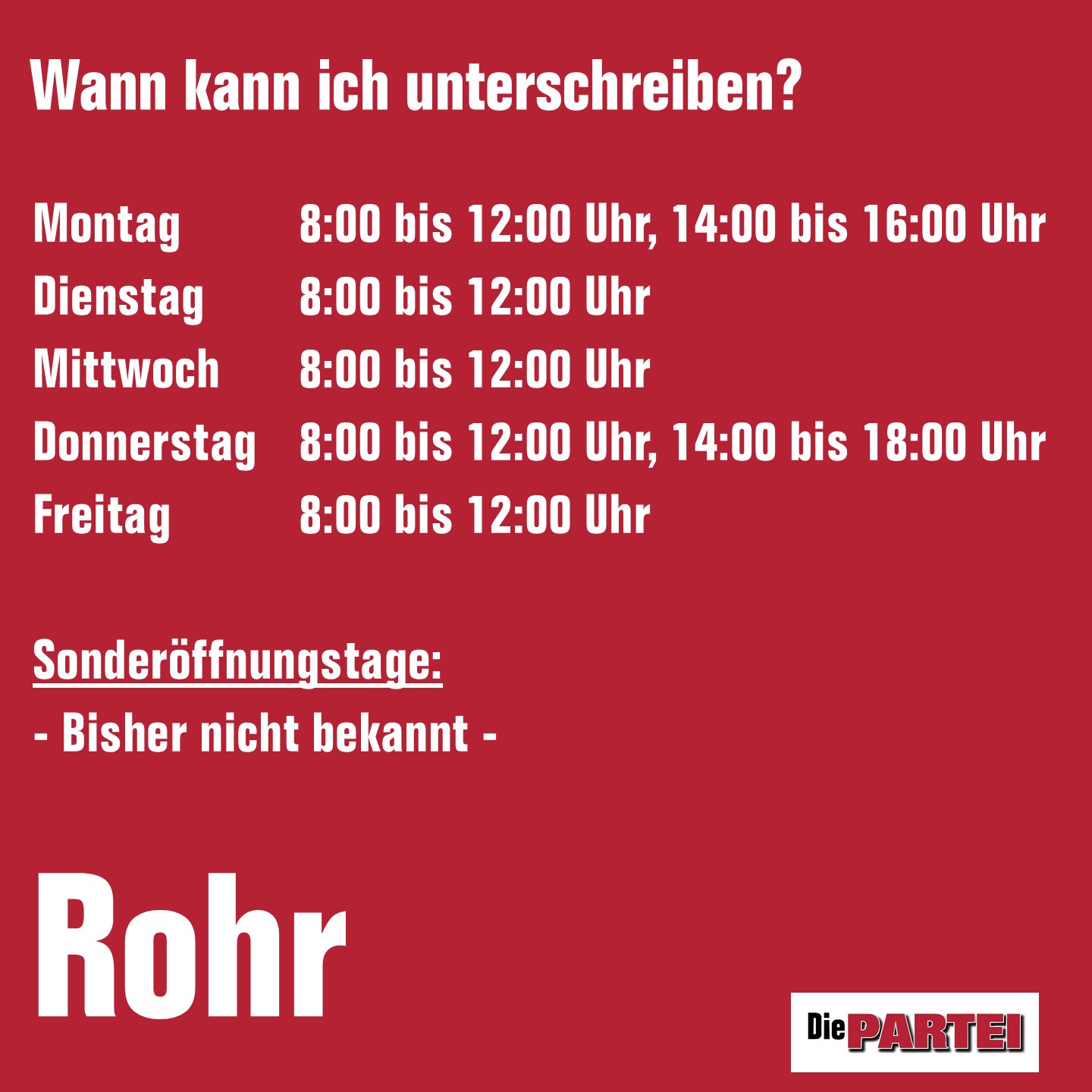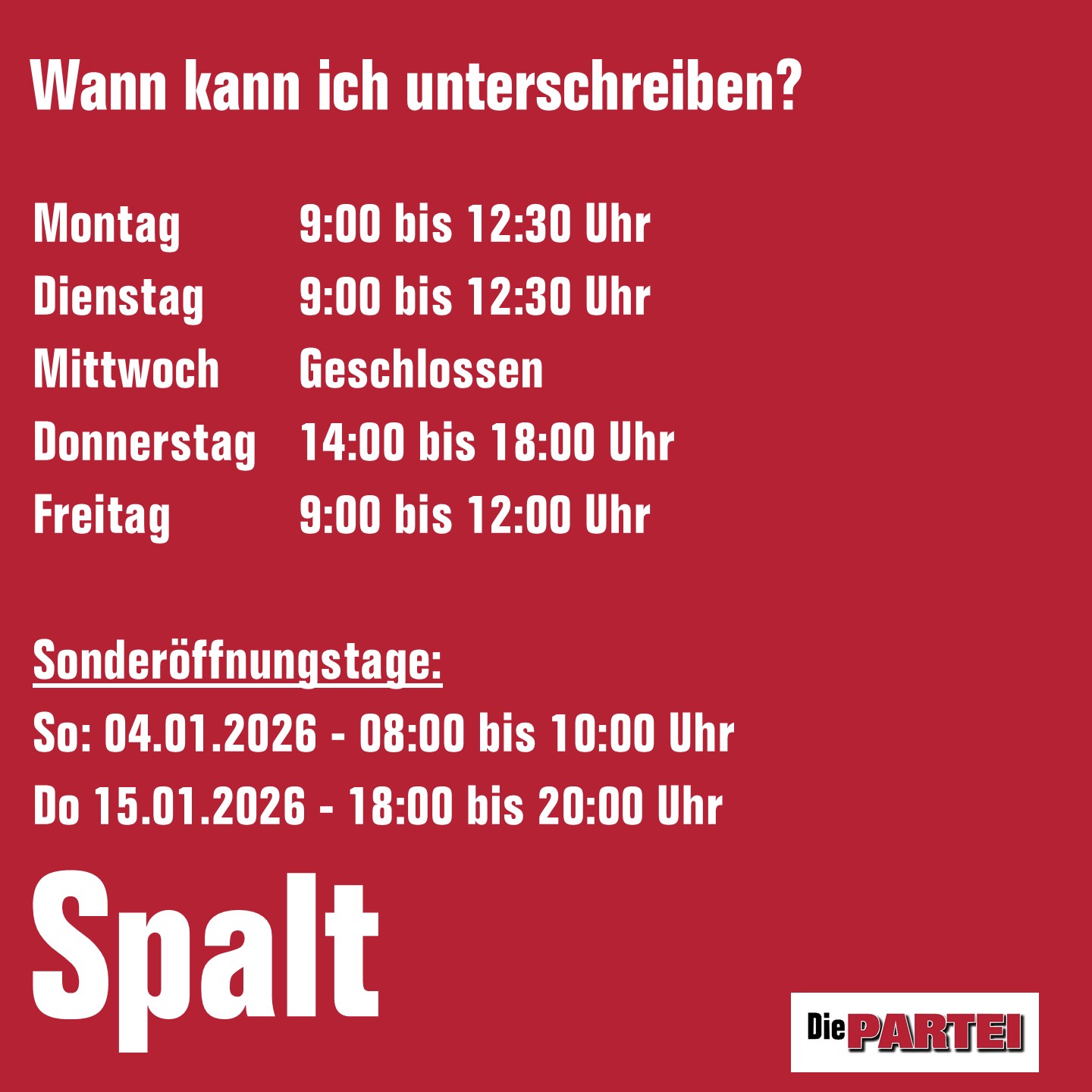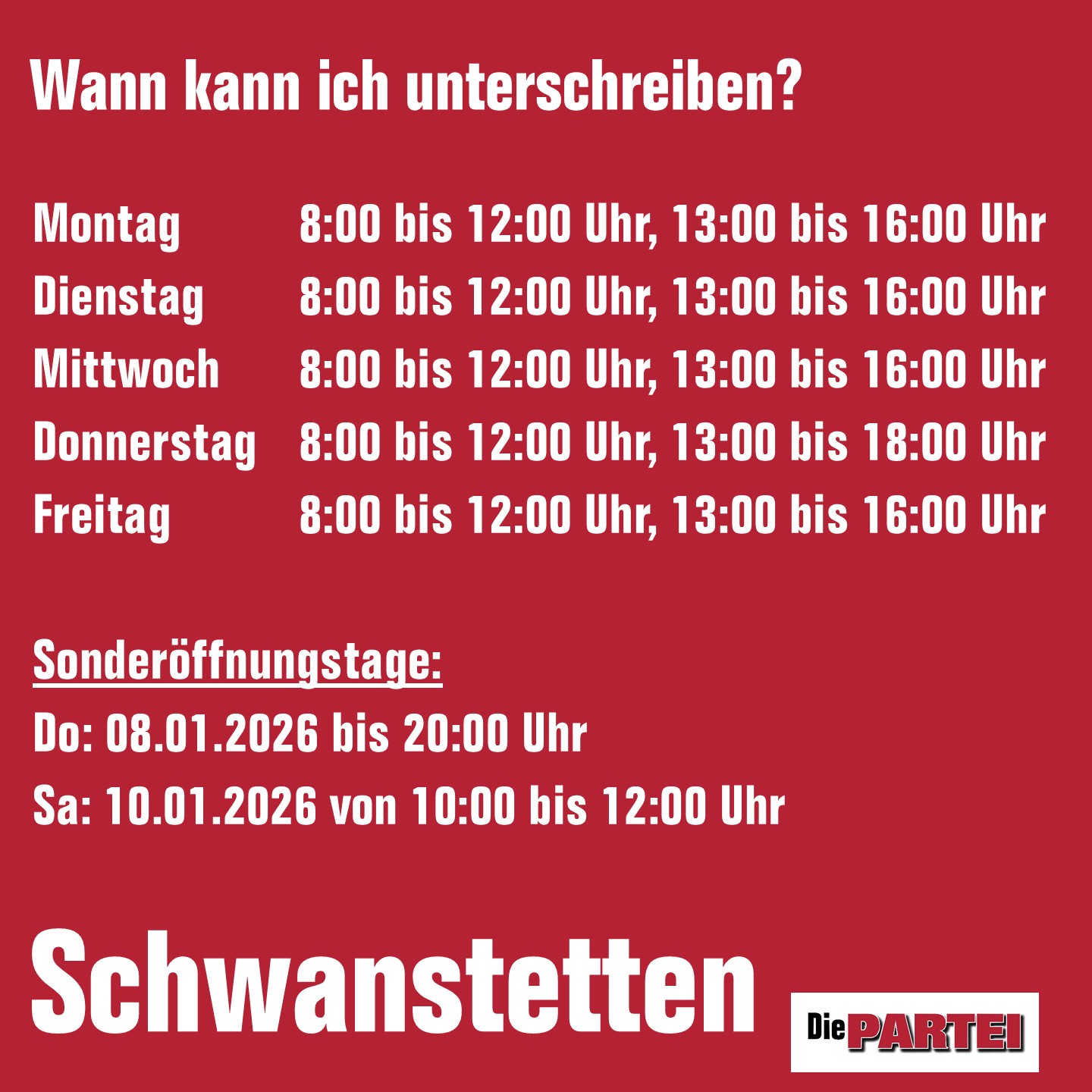 Um zur Kreistagswahl zugelassen zu werden brauchen wir insgesamt 385 Unterstützungsunterschriften. Damit das möglichst einfach ist, gibt das Gesetz eine Unterzeichnung im Rathaus der jeweiligen Heimatgemeinde vor. Wir haben dir alle Öffnungszeiten der Gemeinden zusammengefasst, jetzt musst du nur noch unterschreiben. Danke dir bereits jetzt!