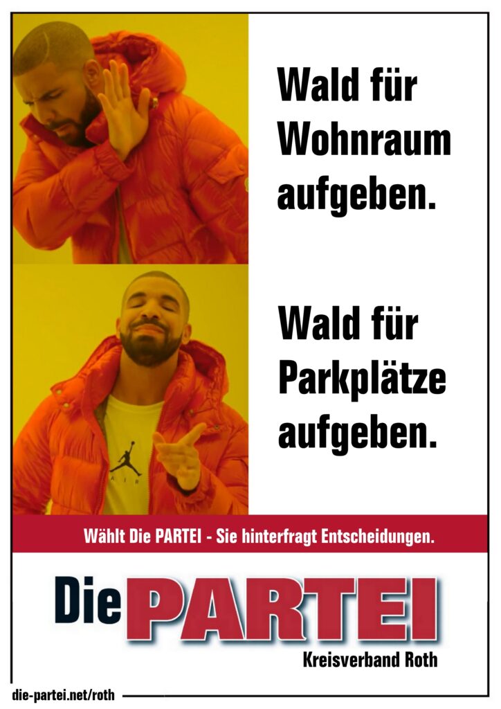Selbstverständlich wurde diese Logik dann auch bei den Parkplätzen angewandt – nicht. Denn als es darum ging diese Waldfläche (welche größer ist) zu entfernen, waren plötzlich alle dafür. Es gab weder Vorschläge über ein mehrstöckiges Parkhaus zur Flächeneinsparung noch andere Kritiken über die Beseitigung des wertvollen Waldes – von keine der Parteien im Ausschuss. Somit wurde der Parkplatz einstimmig angenommen.