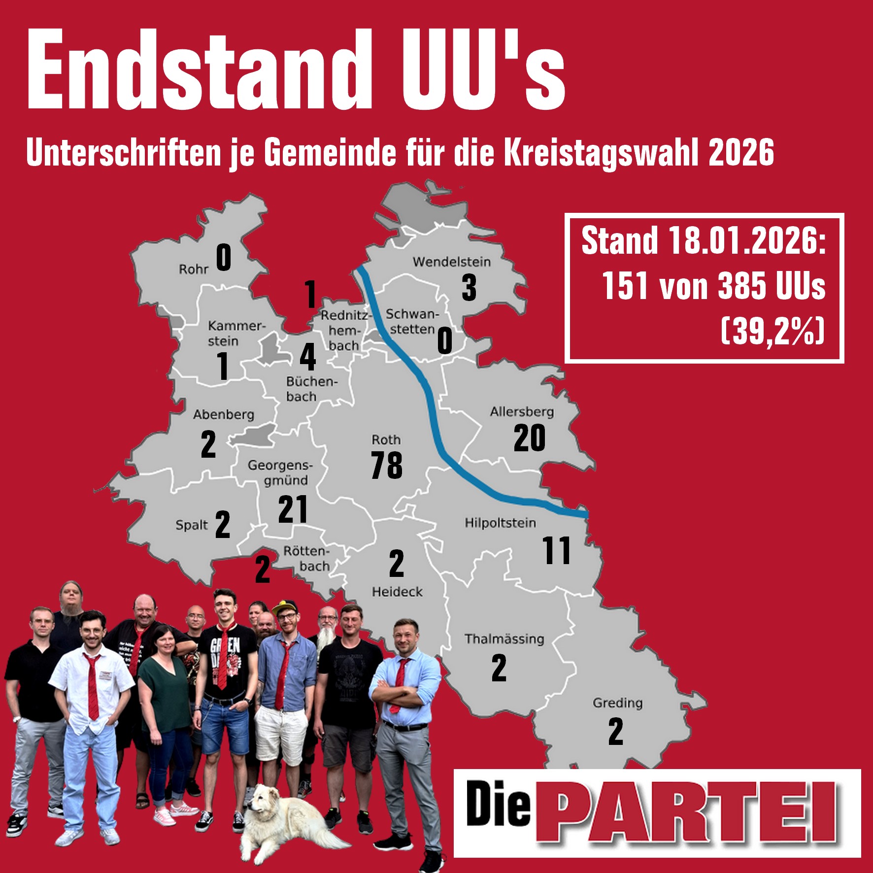 Es ist soweit, der 19.01.2026 ist vorbei und eigentlich ist alles wie immer. Fast alles, denn wir, der Kreisverband der Partei Die PARTEI müssen eingestehen, wir haben den Einzug auf den Wahlzettel der Kreistagswahl verpasst.
