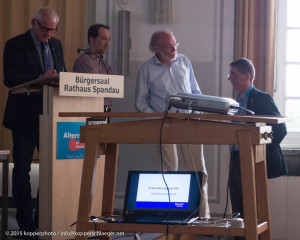 Eine junge engagierte Flüchtlingshelferin brachte ihn aus der Fassung. Konfrontierte sie ihn doch mit seiner Aussage seine Politik sei angeblich keine Hetze gegen Menschen. Sie wollen doch nur eine Aufnahme der Flüchtlinge nach kanadischem Prinzip und eine Beschleunigung des Asylverfahrens. „Die AfD Spandau hat kein Programm!“ verkündete der große weißhaarige Mann von seinem Podium.