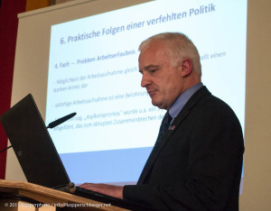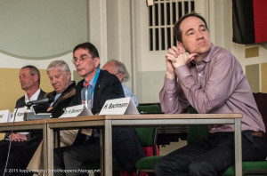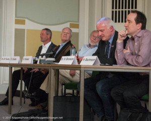 Pünktlich zur Podiumsdiskussion verabschieden wir uns von unserer Polizeibegleitung, mit dem Versprechen weiterhin seriös und selbstverständlich auch weiterhin friedlich die Veranstaltung der AfD beizusetzen. Die Polizei blieb und wir auch, nur nicht mehr vor dem Rathaus – jetzt direkt vor Ort im Bürgersaal.