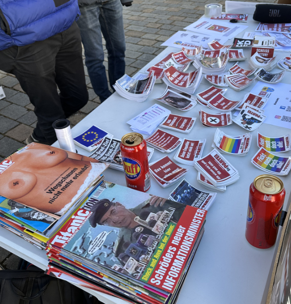 Es sind noch Aufkleber übrig, wir sehen uns also gezwungen, am Samstag, 15. Februar, wieder zu kommen. Ihr findet uns von 11 bis 16 Uhr im Schatten, Heizpilze sind willkommen!
