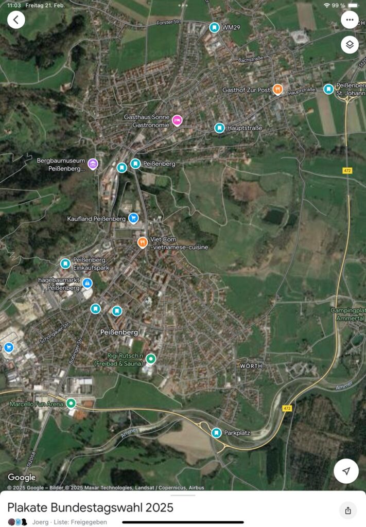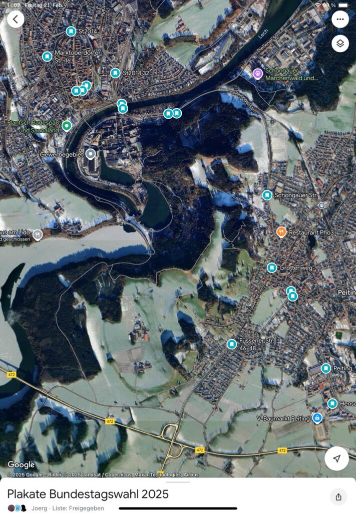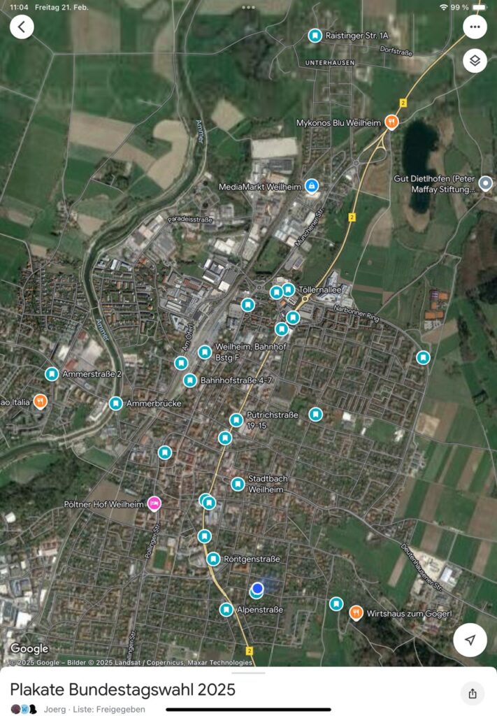Wie geil ist das denn?! Ihr wollt euch gerne eines unserer sehr guten Wahlplakate aufs Klo, in den Hobbyraum oder in Schwiegermamas Schlafzimmer hängen? Kein Problem! Nehmt sie euch einfach. Ab Sonntag (18 Uhr) ist unsere Wahlwerbung in Weilheim, Schongau, Peiting und Peißenberg (und wo immer ihr sie im Landkreis noch findet) Freiwild. Damit die Plakate-Jagd für euch nicht zu anstrengend wird, haben wir euch oben die Standorte eingezeichnet. Wenn ihr dann auf Raubzug geht, würden wir euch bitten, auch die Kabelbinder mitzunehmen und zu entsorgen (der Umwelt zu Liebe und so…). Wir weisen zudem daraufhin, dass einzig unsere Plakate zum Diebstahl freigegeben sind. Die anderen Parteien sollen ihren Scheiß gefälligst selbst aufräumen!