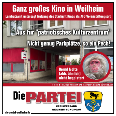 Er ist ausgeträumt, der Albtraum von der blau-braunen Hochburg an der Weilheimer Schützenstraße. AfD-Landratender-Kandidat „Bernd“ Nolte wollte das Starlight-Kino in ein „patriotisches Kulturzentrum“ verwandeln. Unter neuer „Führung“ sollte dort der AfD-Abschaum aus ganz Oberbayern seine menschenverachtenden Parolen grölen.