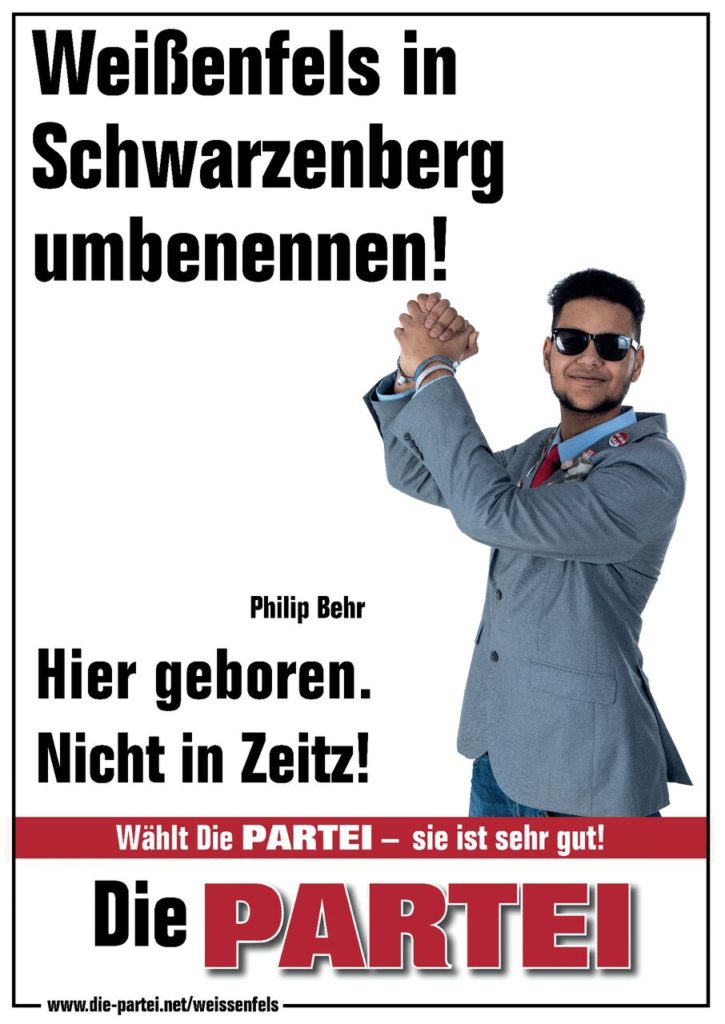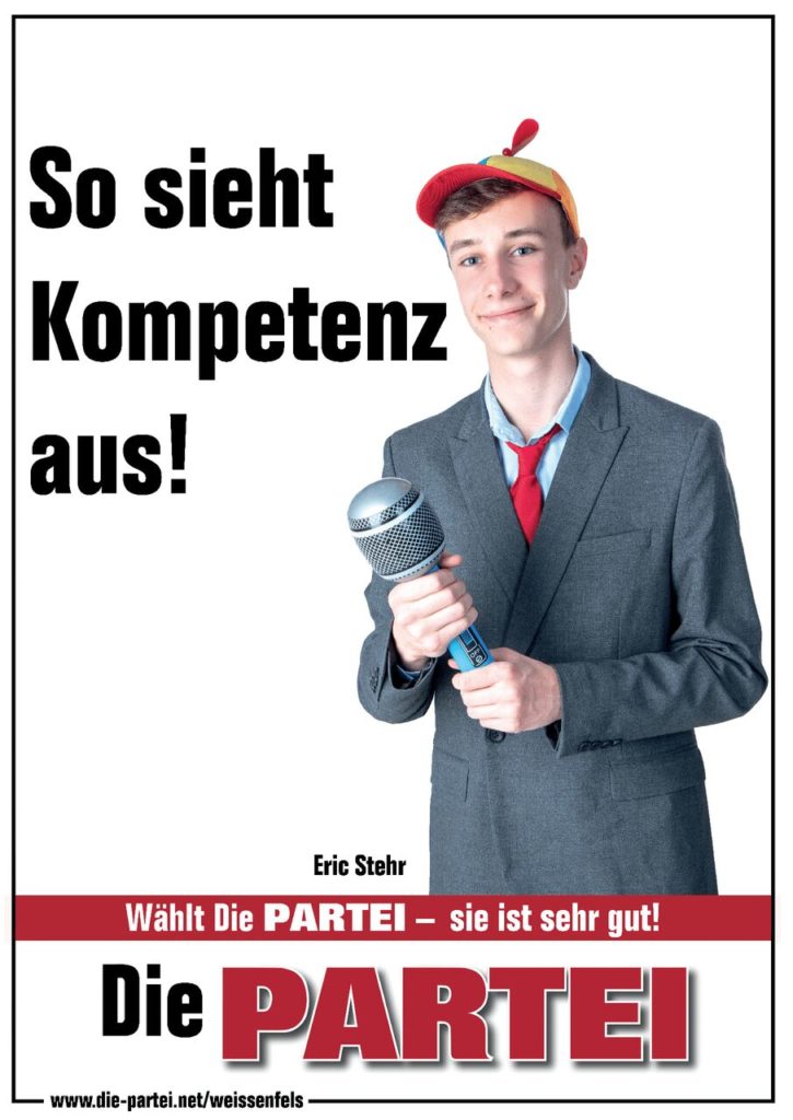 Wir freuen uns, ein gutes Ergebnis von 2,02% in Weißenfels erreicht zu haben und beglückwünschen Eric Stehr zum erfolgreichen Einzug in den Stadtrat für Die PARTEI Weißenfels!