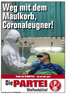 Wir regen daher an, alle Coronaleugner:innen konsequent und umfassend von allen Masken zu befreien, da sie ja ohnehin schwerste gesundheitliche Schäden durch das Tragen befürchten.